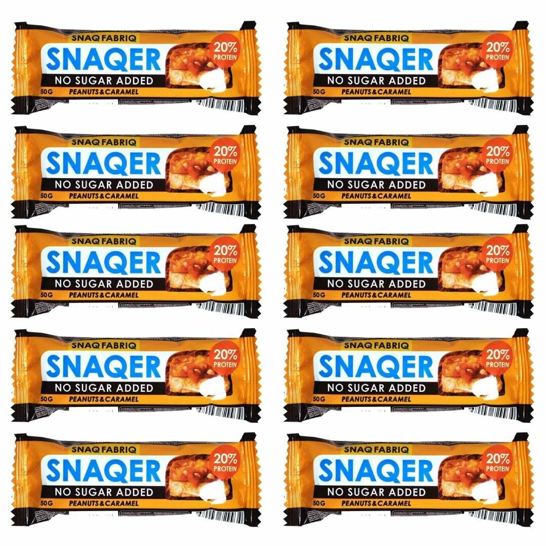 10 цен на Батончик протеиновый в шоколаде Snaq Fabriq SNAQER, Арахис и карамель, 50 гр. (10 шт.)