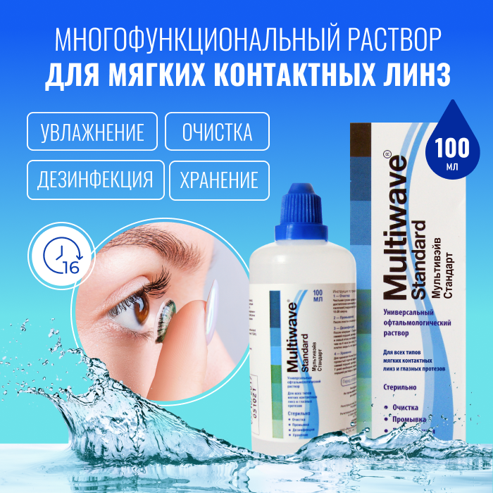 Раствор универсальный Multiwave Standart для ухода за контактными линзами 100 мл. информация: