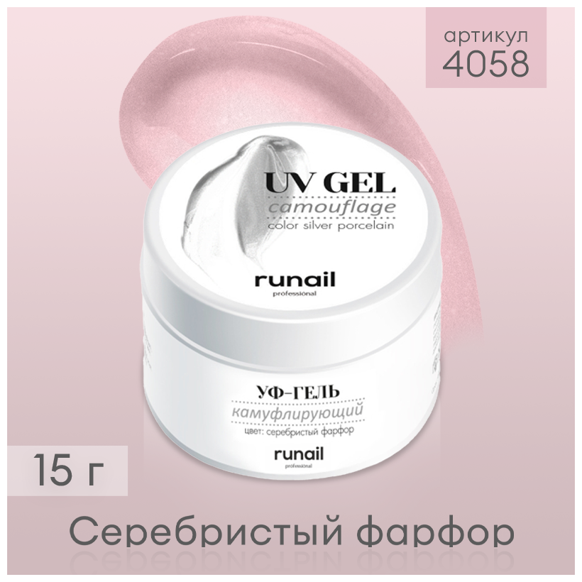 Runail Professional Камуфлирующий УФ-гель (цвет: серебристый фарфор), 15 г ( 4058 )
