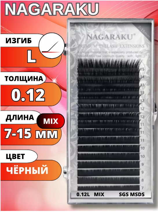 Nagaraku Ресницы черные, 16 линий L 0.12 7-15 mm MIX информация: