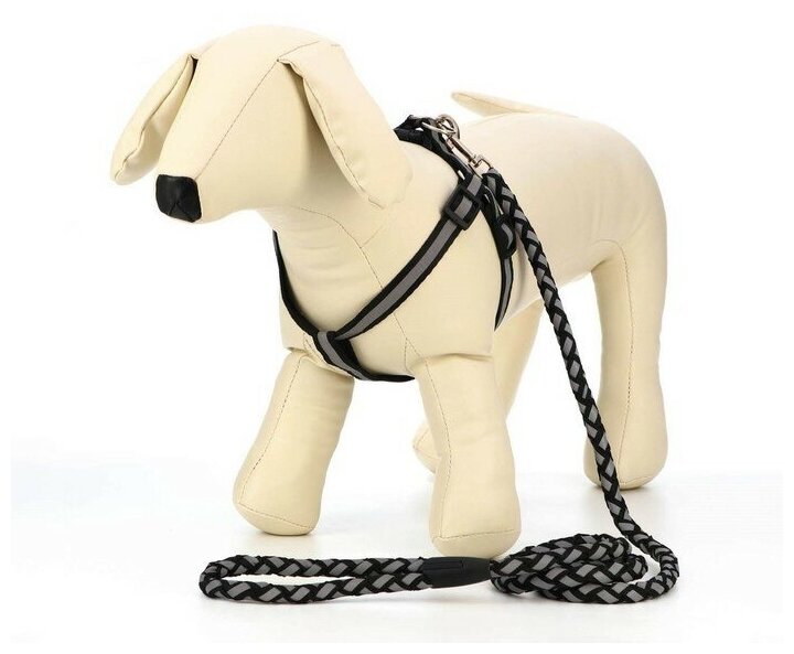 Шлейка для собак Пижон "Плетенка", 32-48 см, флуоресцентный, с поводком 115х1 см, черный