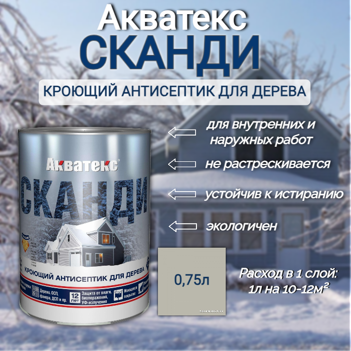 Кроющий антисептик для древесины акватекс сканди (айсберг (база А) / 0.75л.)