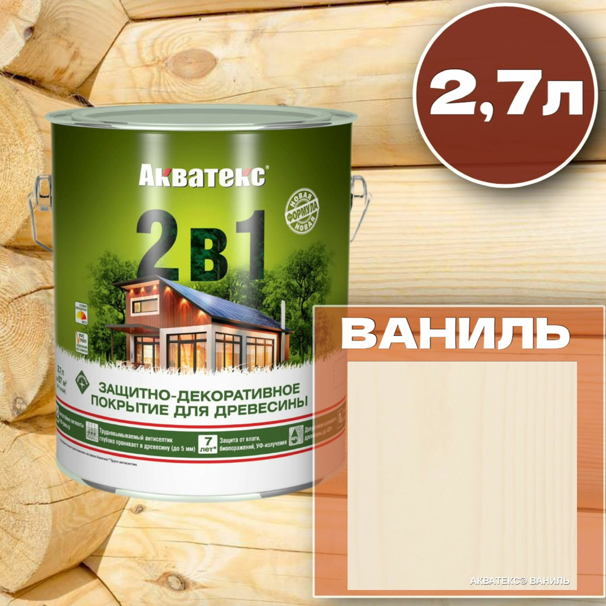 Защитно-декоративное Акватекс покрытие для древесины, пропитка по дереву, 2в1, ваниль, 2,7 л 1 699 ₽