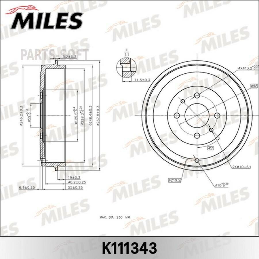 MILES K111343 Тормозной барабан информация: