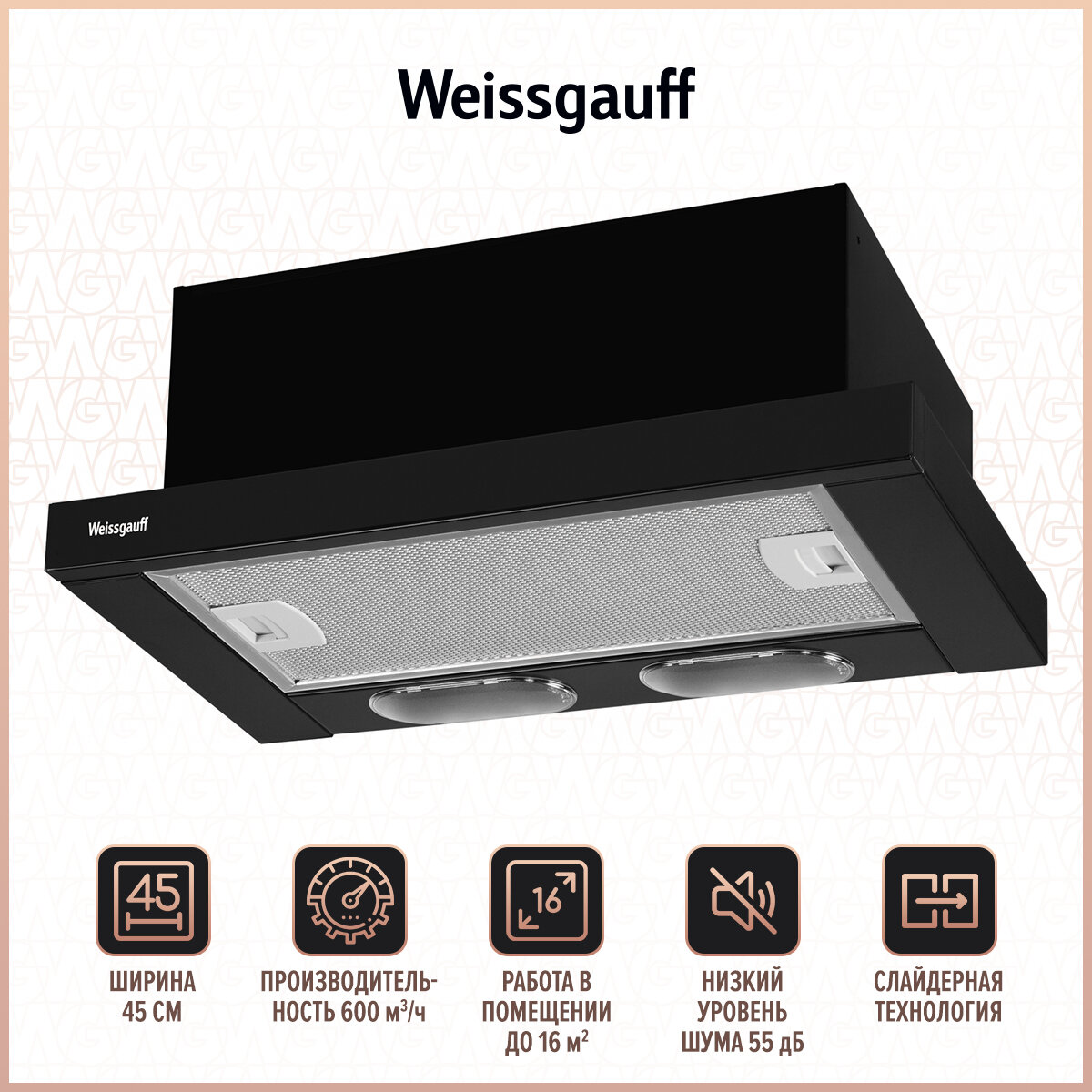 Отзывы на Вытяжка встраиваемая Weissgauff TEL 450 EB черный управление: кнопочное (1 мотор)