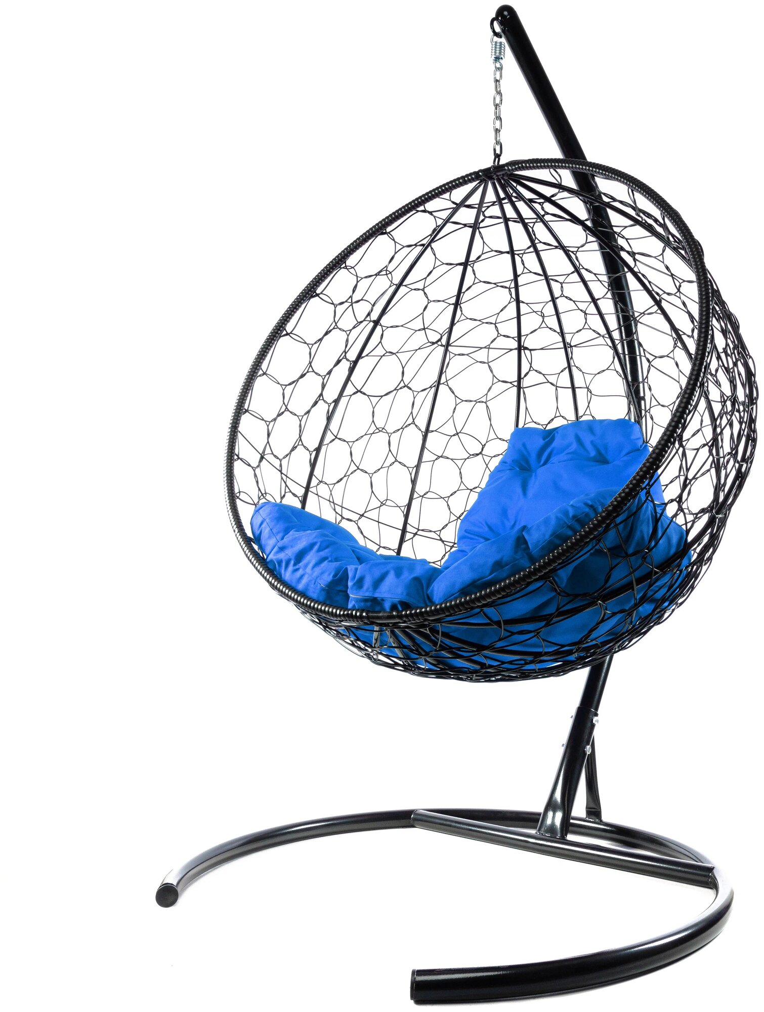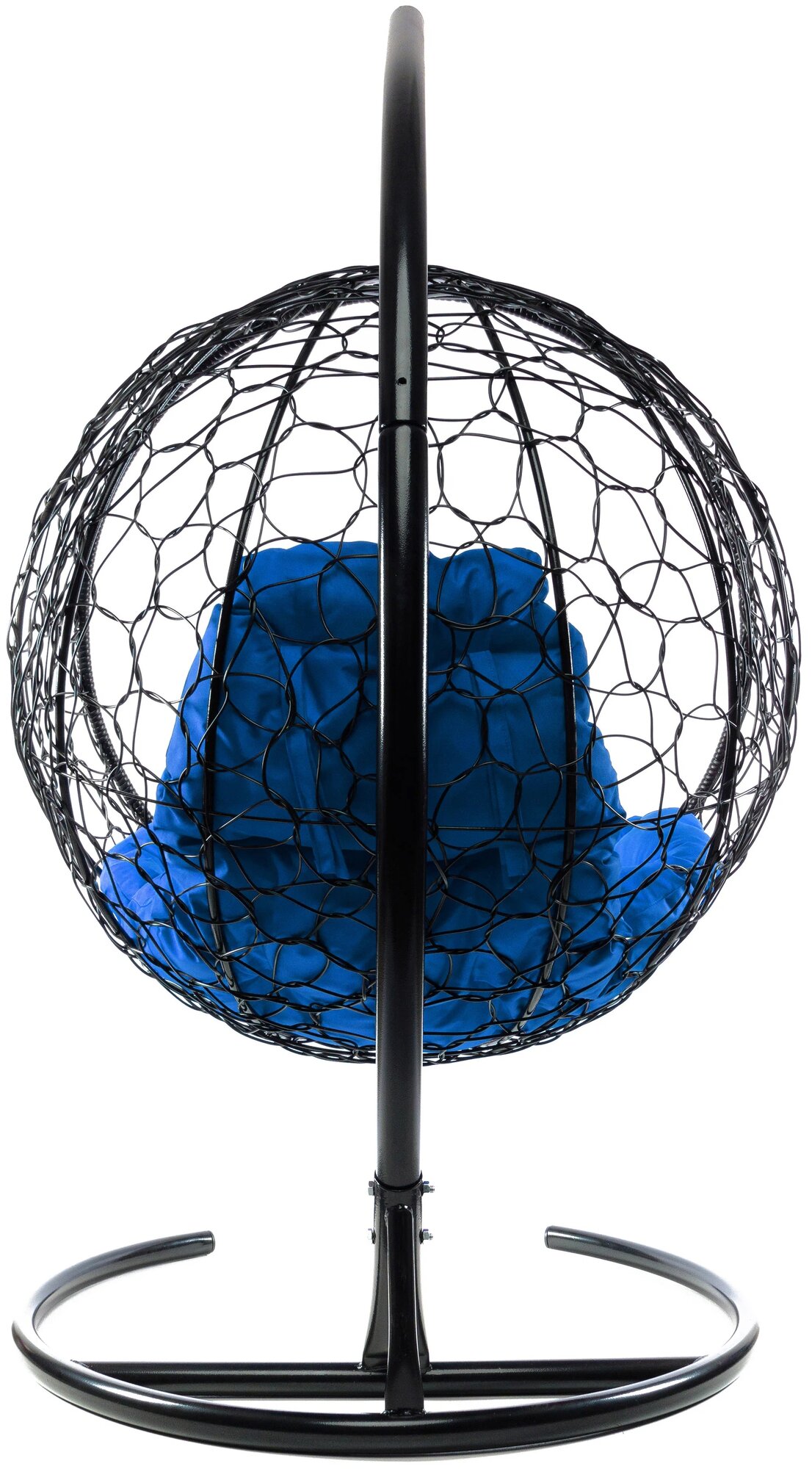 Подвесное кресло M-Group круглый ротанг чёрное, синяя подушка