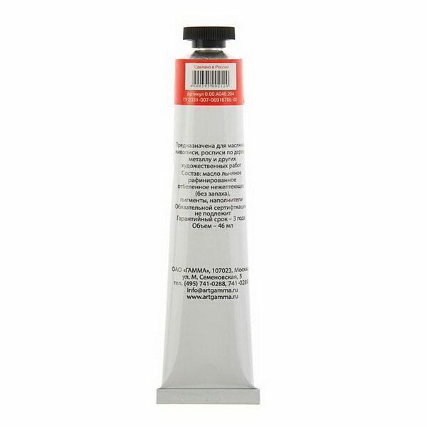 Краска масляная в тубе 46 мл, Гамма "Студия" №204, кадмий красный светлый, имитация