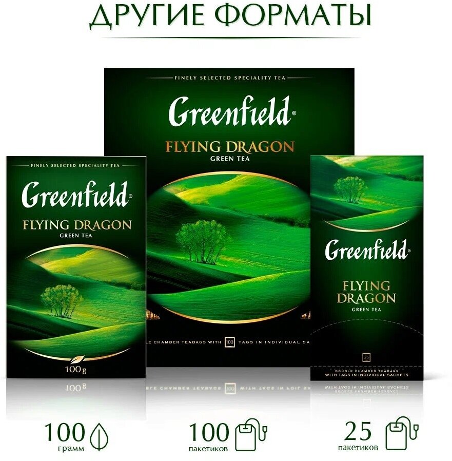 Чай Greenfield, Flying Dragon, зеленый, листовой, 200 г, 3 шт. 2 144 ₽