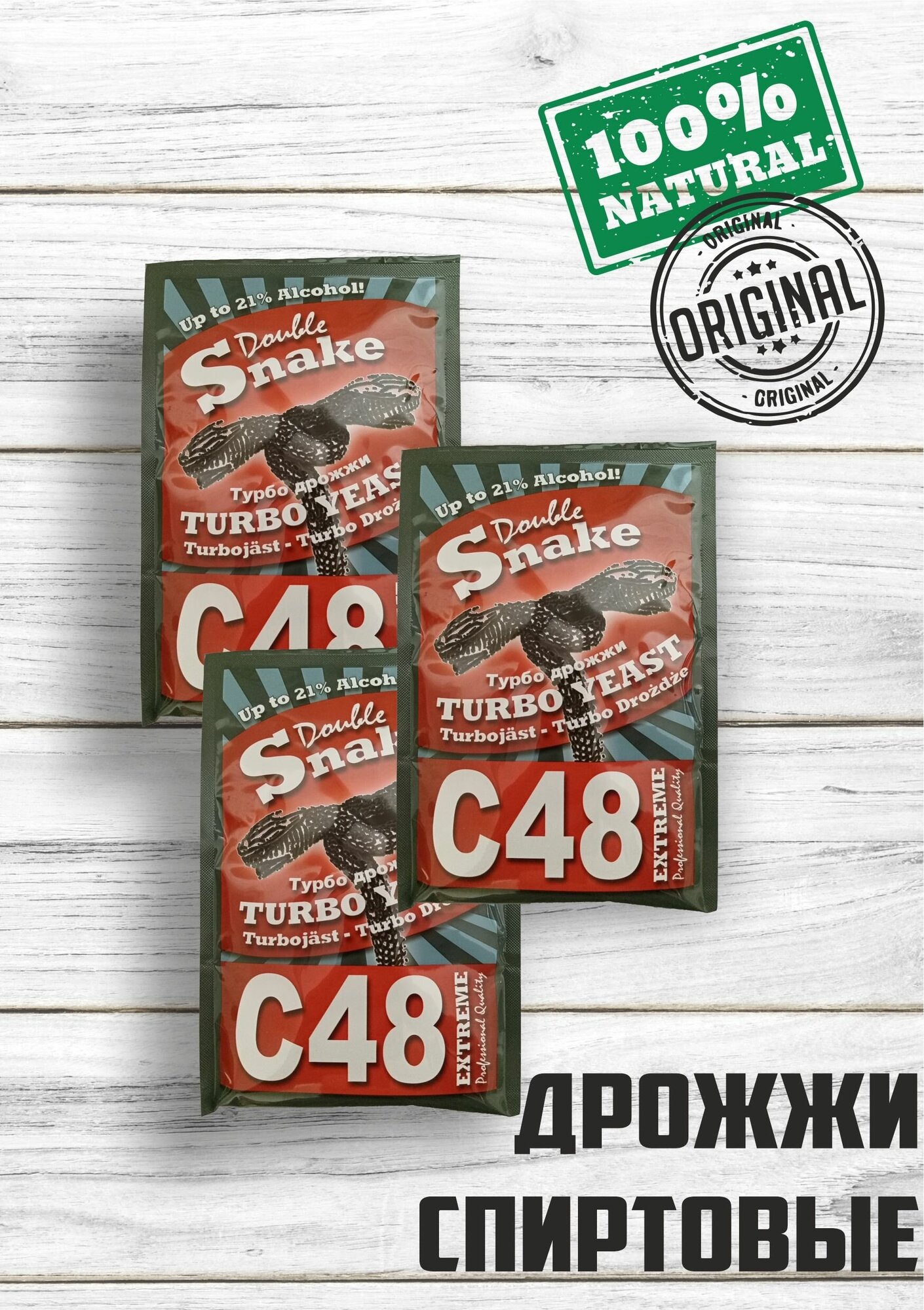 Турбо дрожжи Double Snake C48, 130 гр (Дабл Снейк С48 спиртовые), 3 шт. информация: