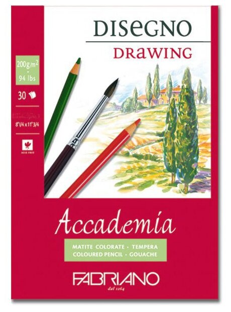 Альбом для зарисовок Fabriano Accademia 200г/м.кв 14,8x21см мелкозернистая 30 листов спираль по короткой стороне информация: