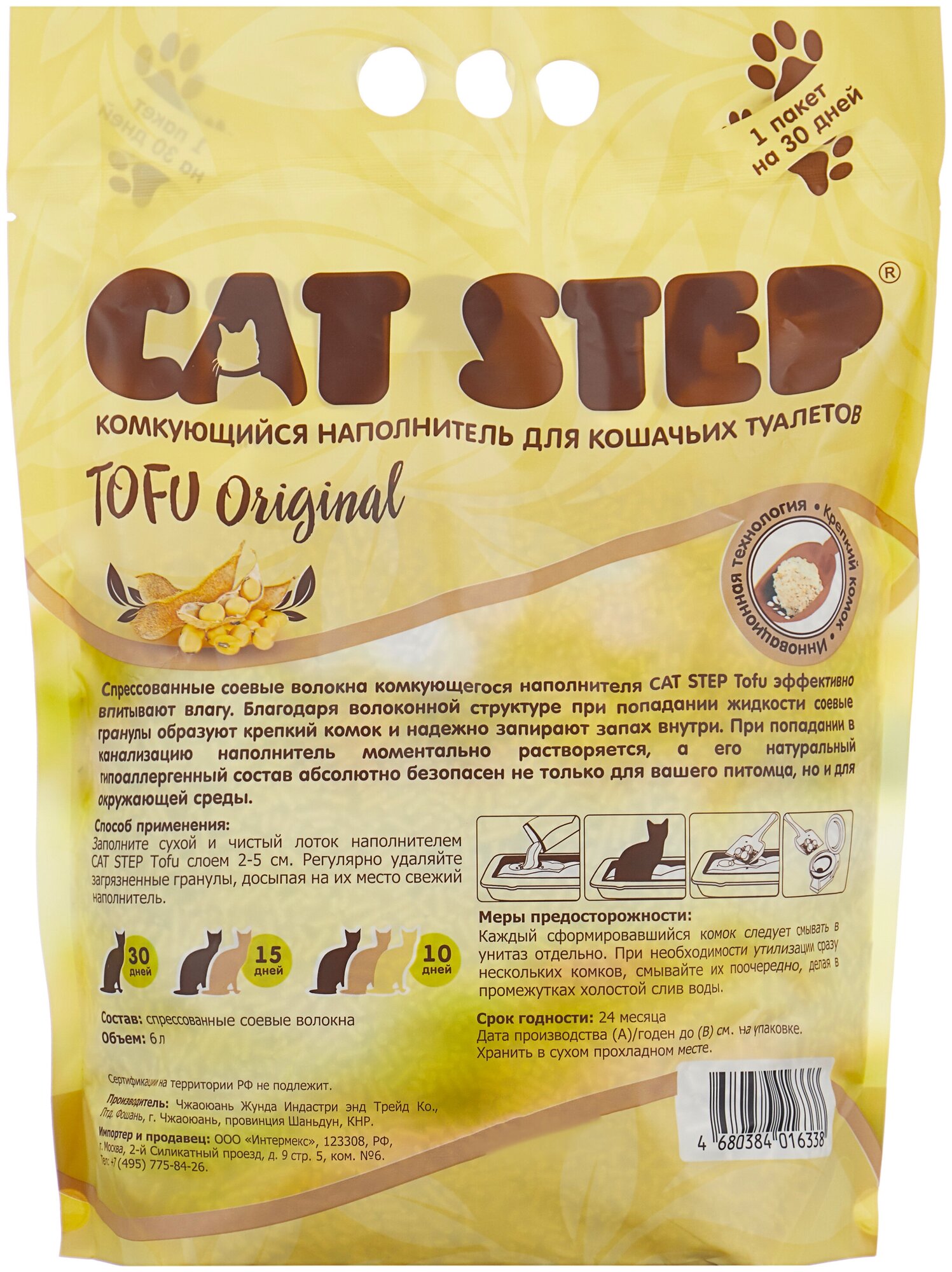 Cat Step соевый комкующийся наполнитель для кошачьих туалетов Original 6л Tofu/Тофу