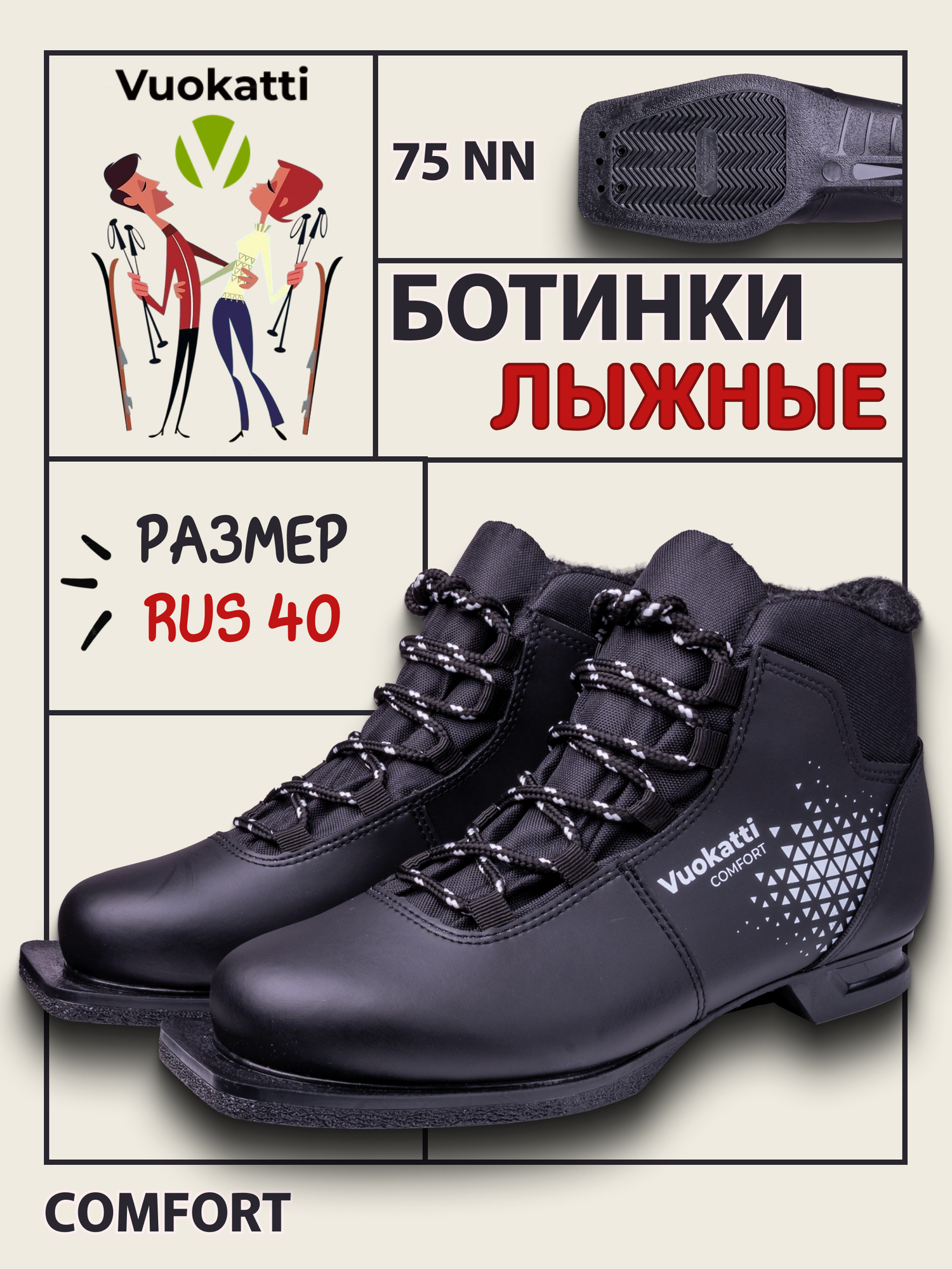 Ботинки лыжные 75мм Vuokatti Comfort (RU39 EU40 CM25)