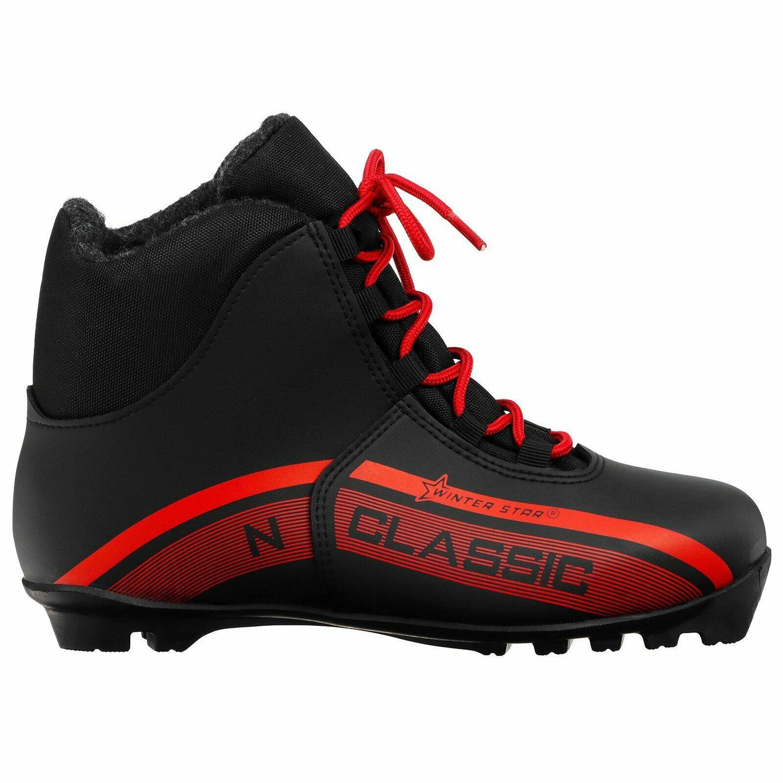 Ботинки лыжные Winter Star classic, NNN, искусственная кожа, цвет чёрный/красный, лого белый, размер 39
