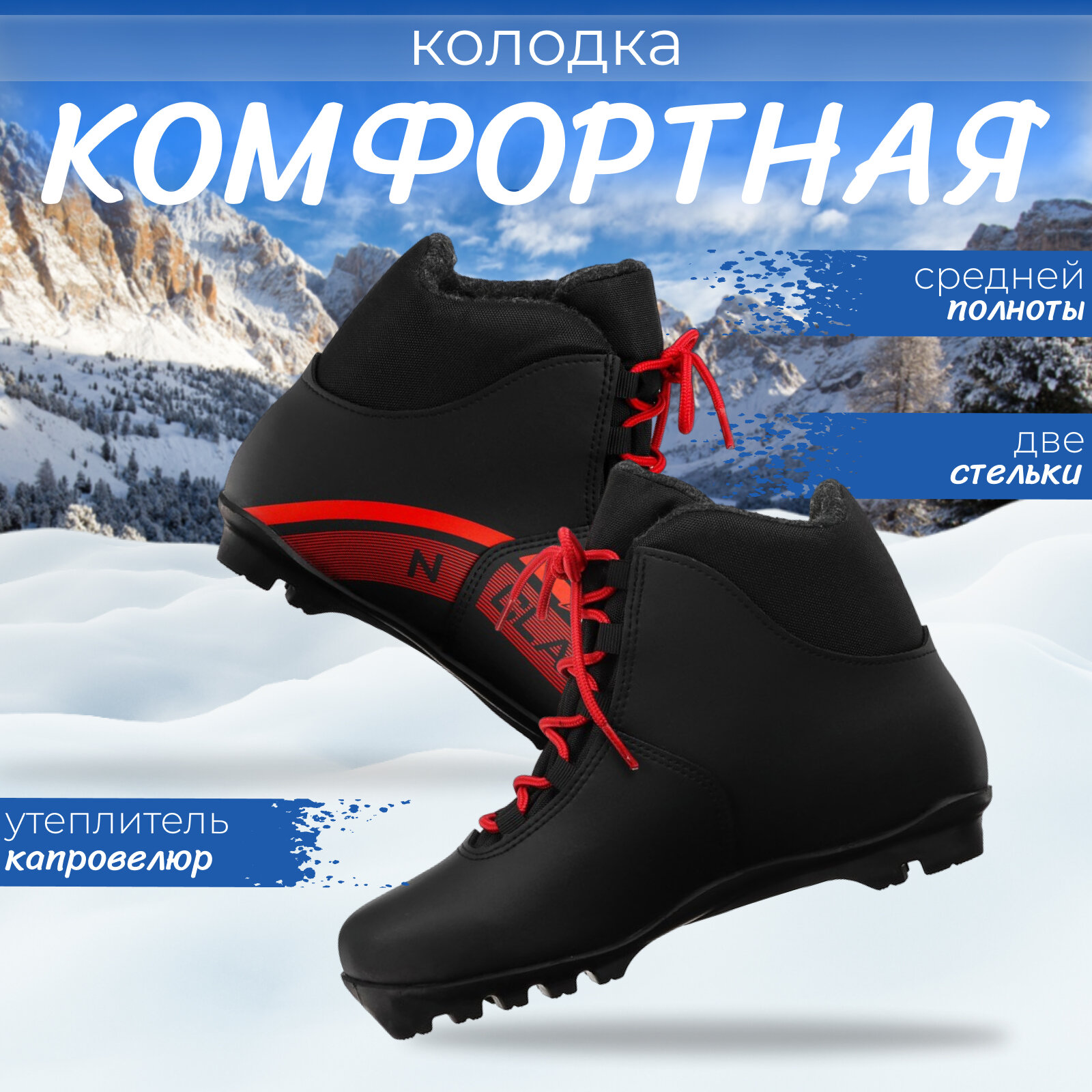 10 цен на Ботинки лыжные Winter Star classic, NNN, р. 35, цвет чёрный, лого красный