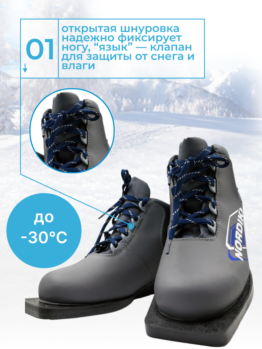 Лыжные ботинки для взрослых и подростков75 мм NORDIK (синтетика) 40 размер информация: