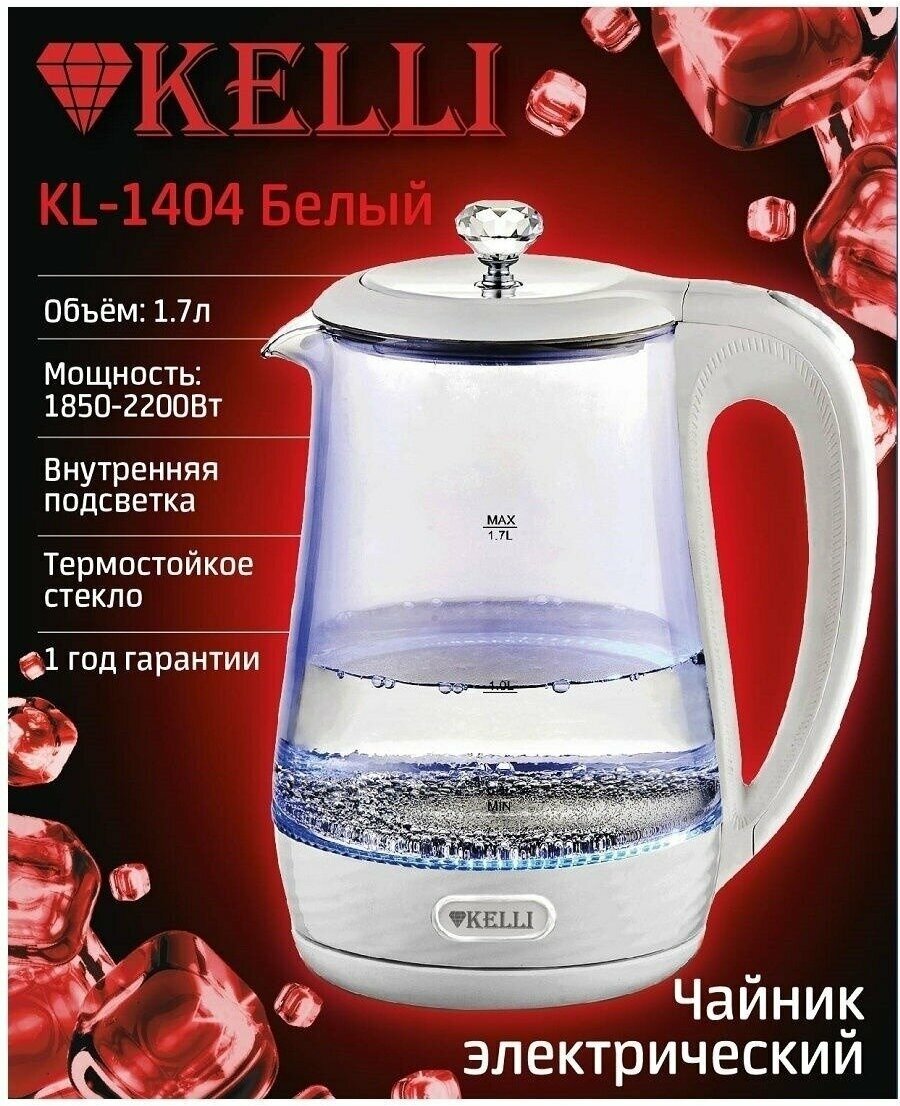 Чайник электрический Kelli KL-1404 / 1.7 л / 2200 Вт / стекло / белый