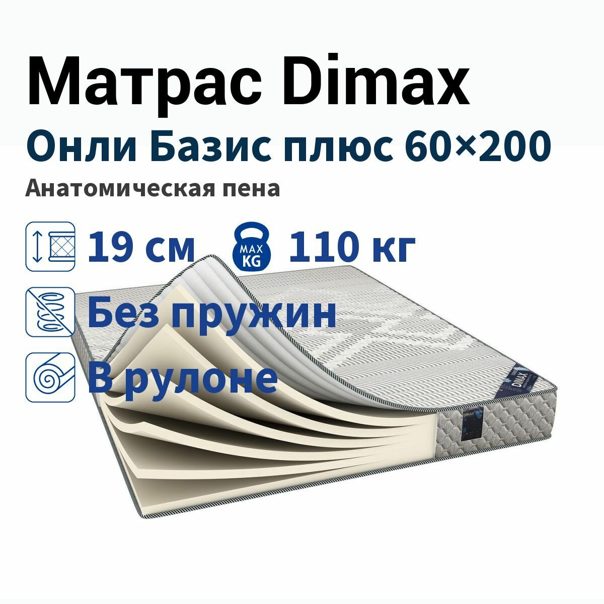Матрас Dimax Онли Базис Плюс, Размер 75х200 см 9 289 ₽