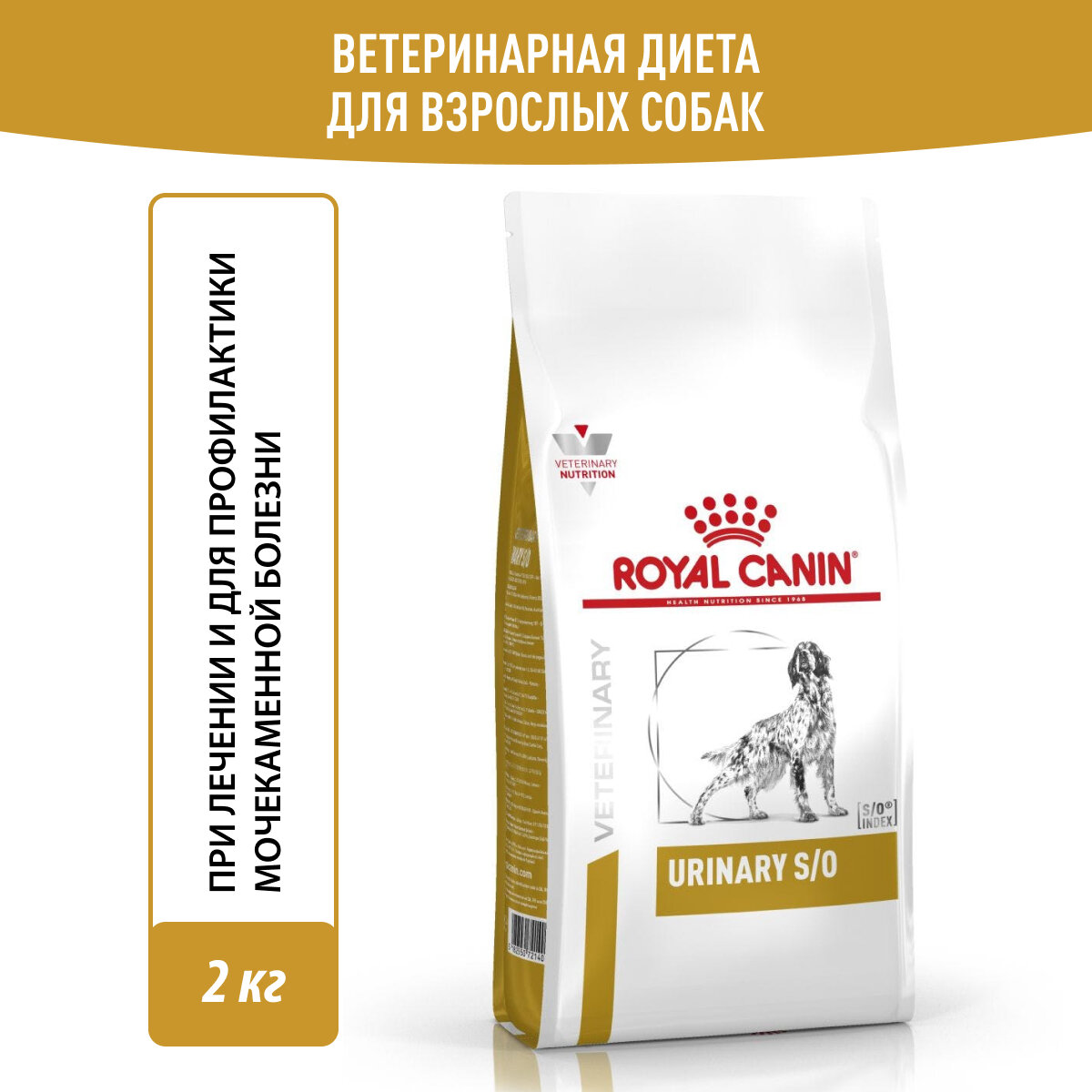 Royal Canin Urinary S/O Корм сухой диетический для взрослых собак при мочекаменной болезни, 2 кг 2 700 ₽