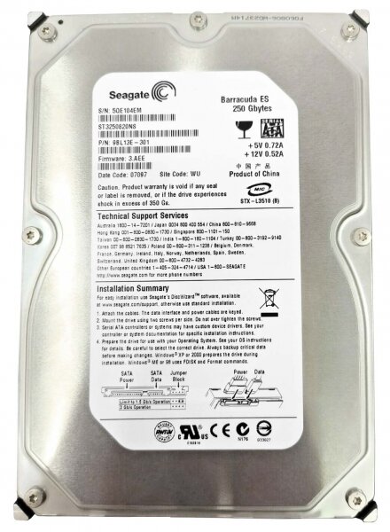 Отзывы на Жесткие диски Seagate Жесткий диск Seagate Barracuda ES 250Gb (7.2K/8Mb) NCQ 3G SATAII ST3250820NS