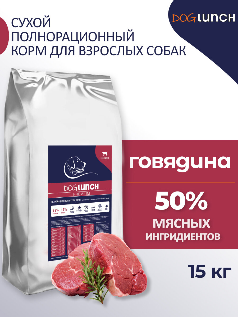 Дог Ланч Премиум сух.д/взрослых собак с Говядиной 15кг 35% информация:
