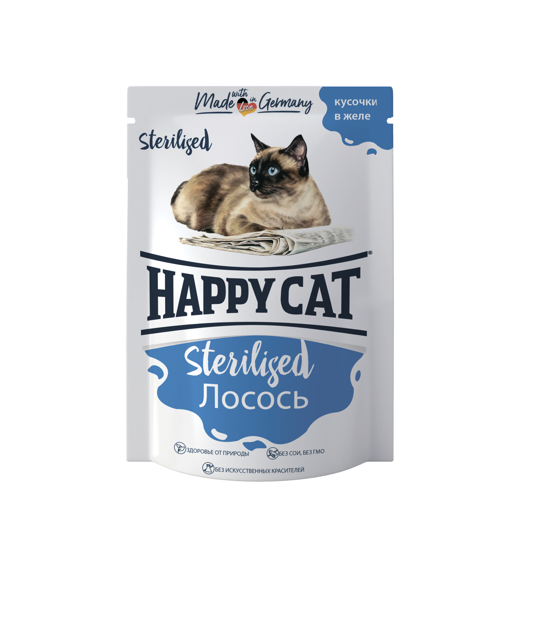 Отзывы на 7504211 Хэппи Кэт пауч д/стерилизованных кошек кусочки в желе Лосось 100гр (пауч) Россия