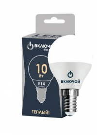 Лампа светодиодная 10W E14 шарик 3000K 220V (LED PREMIUM G45-10W-E14-N) Включай информация: