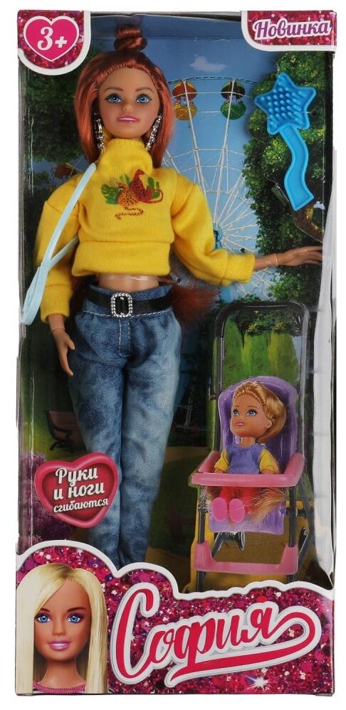 Карапуз, Кукла София в джинсах и жёлтой кофте (29 см, шарнир, с аксессуарами), 66001-SET03-S-BB