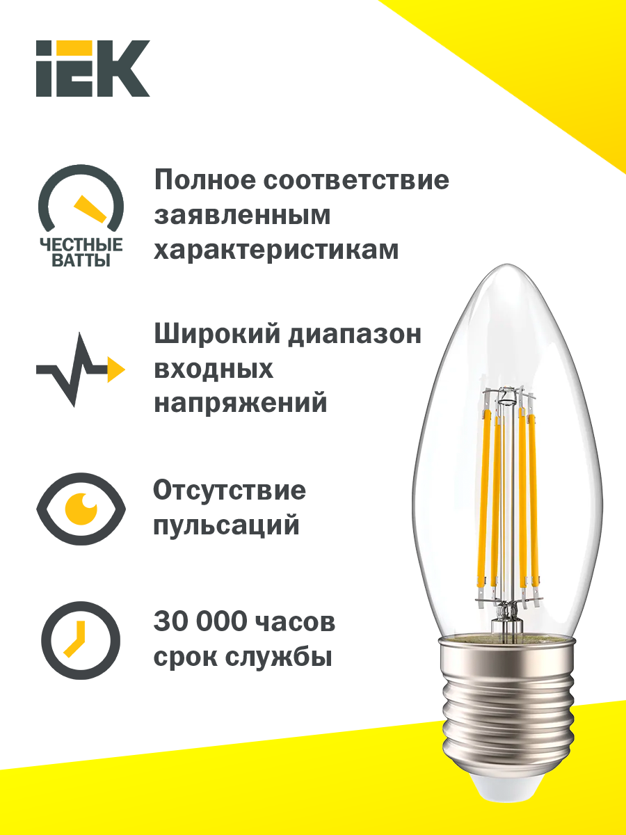 Отзывы на Светодиодная лампа LED C35 свеча прозр. 7Вт 230В 3000К E27 серия 360° IEK