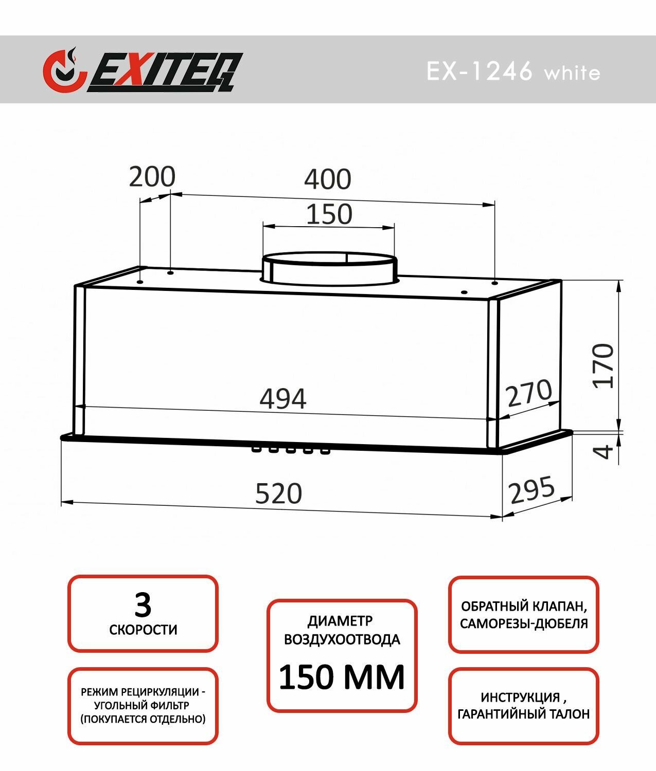 Вытяжка кухонная встраиваемая EXITEQ EX-1246 white 15 389 ₽