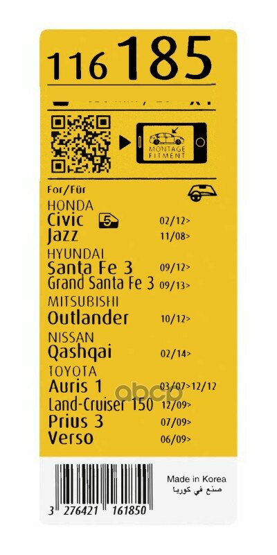 | Модель автомобиля | Acura RDX / Acura MDX / Chevrolet Cobalt / Citroen Jumpy / FAW Vita / Ford Transit Connect / Genesis G70 / Genesis G80 / Genesis G90 / Honda Civic / Honda HR-V / Honda Accord / Honda Jazz / Honda Crosstour / Honda CR-Z / Hyundai i40 / Hyundai i30 / Hyundai Tucson / Hyundai Veloster / Hyundai Santa Fe / Hyundai Solaris / Kia Optima / Kia Sorento / Kia Rio / Kia Sportage / Jeep Cherokee / Kia Ceed / Lexus GS / Lexus ES / Land Rover Discovery Sport / Lexus RX / Mazda CX-7 / Mitsubishi Outlander / Nissan X-Trail / Nissan Qashqai / Nissan Leaf / Nissan Primera / Renault Kadjar / Subaru Outback / Suzuki SX4 / Toyota Avensis Verso / Toyota Avalon / Toyota Auris / Toyota Land Cruiser Prado / Toyota Camry / Toyota Corolla / Toyota RAV4 / Toyota Verso / Toyota Prius / FIAT Scudo / FAW V5 |