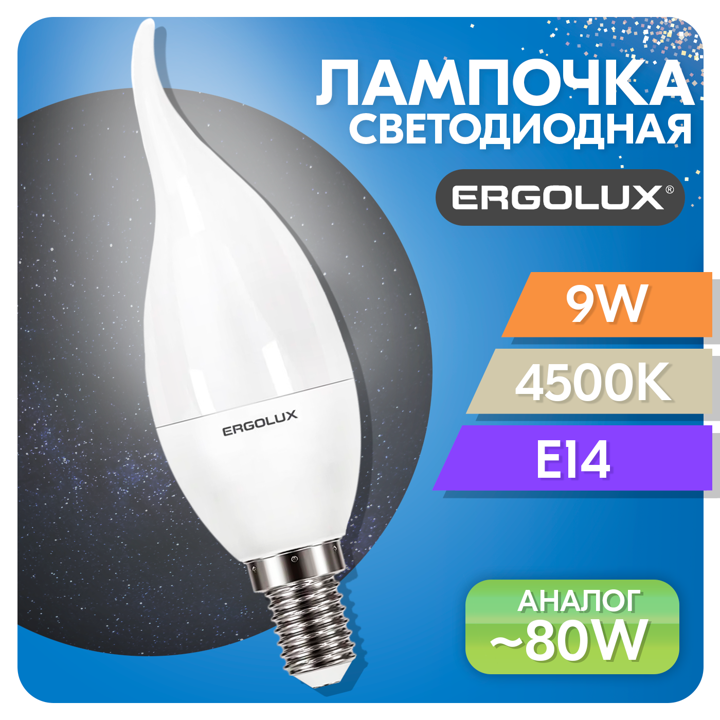 10 цен на Светодиодная лампа Ergolux, 9 Вт, E14, дневной свет, форма свеча на ветру CA35, 4500 кельвинов