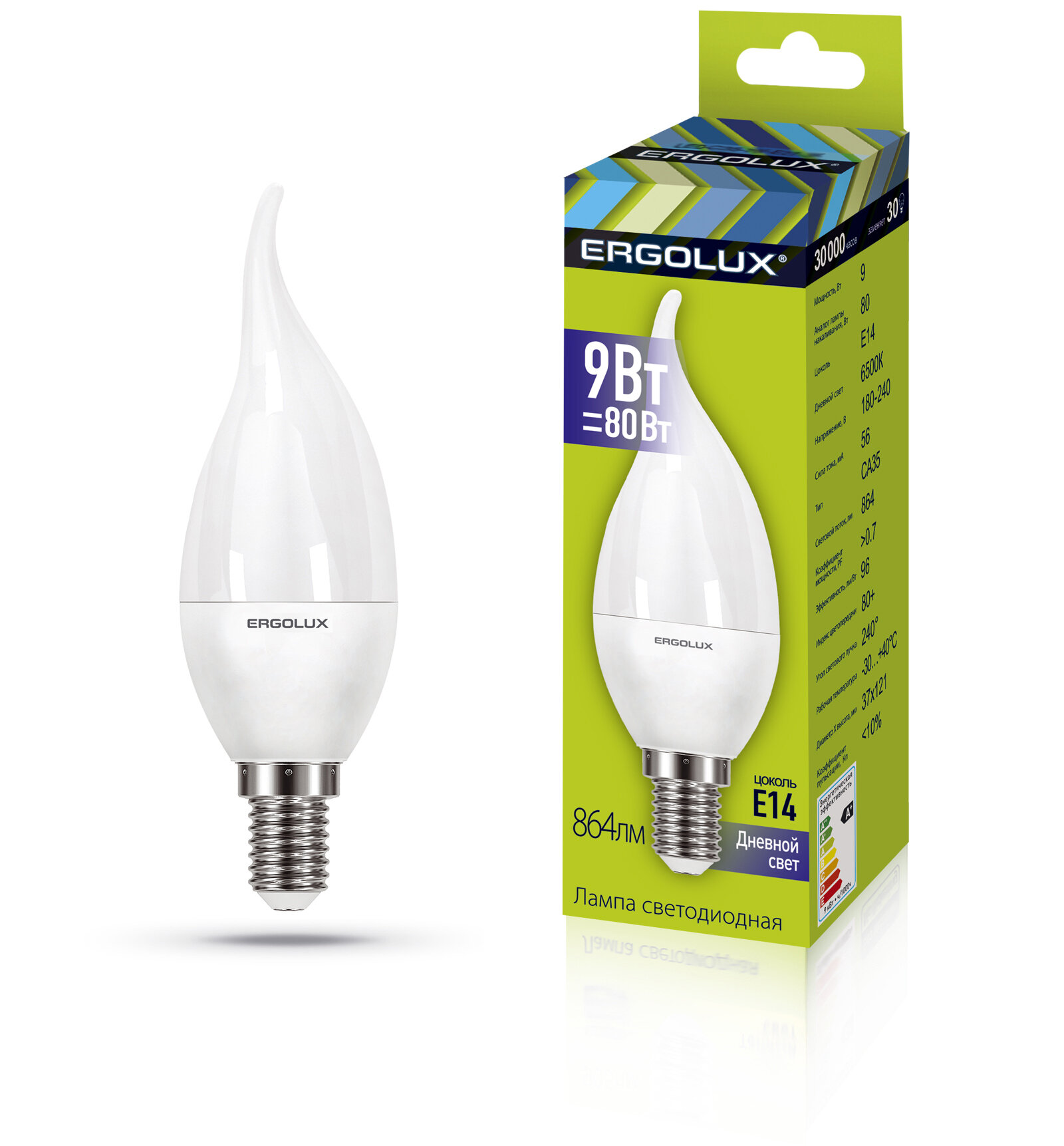 Отзывы на Светодиодная лампа Ergolux, 9 Вт, E14, дневной свет, форма свеча на ветру CA35, 4500 кельвинов