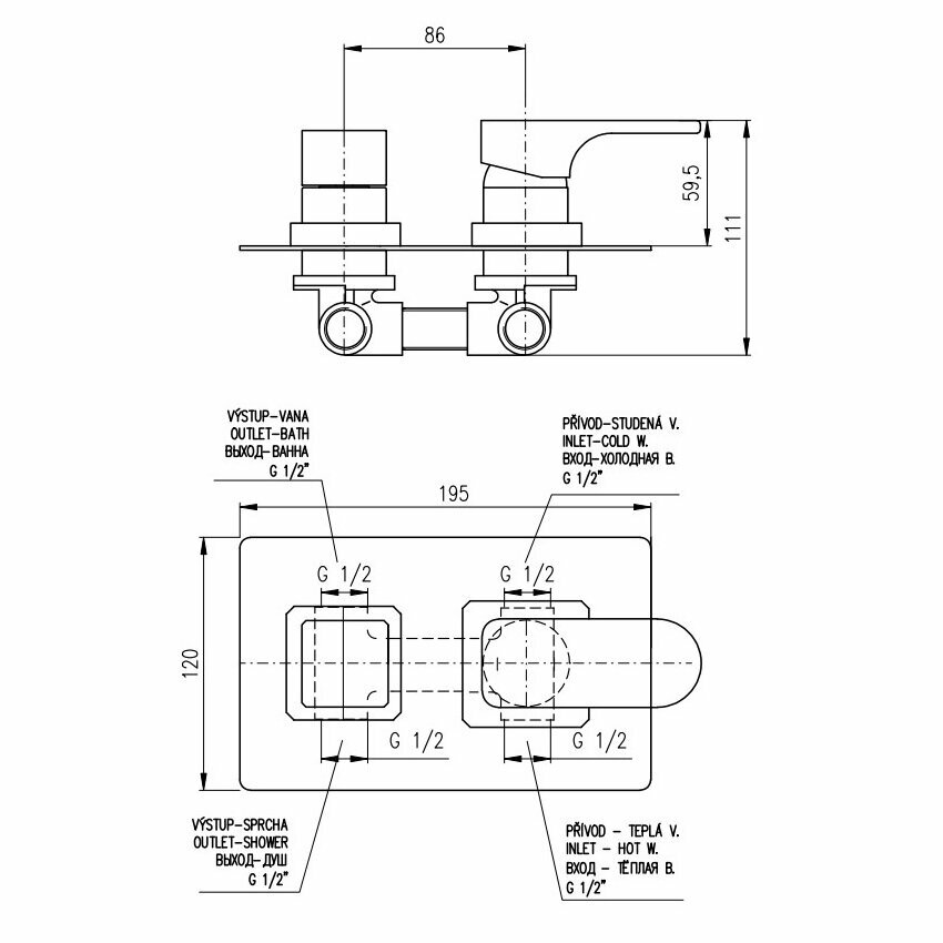 Смеситель RAV Slezаk Yukon для ванной, душа скрытого монтажа, хром/белый 38 530 ₽