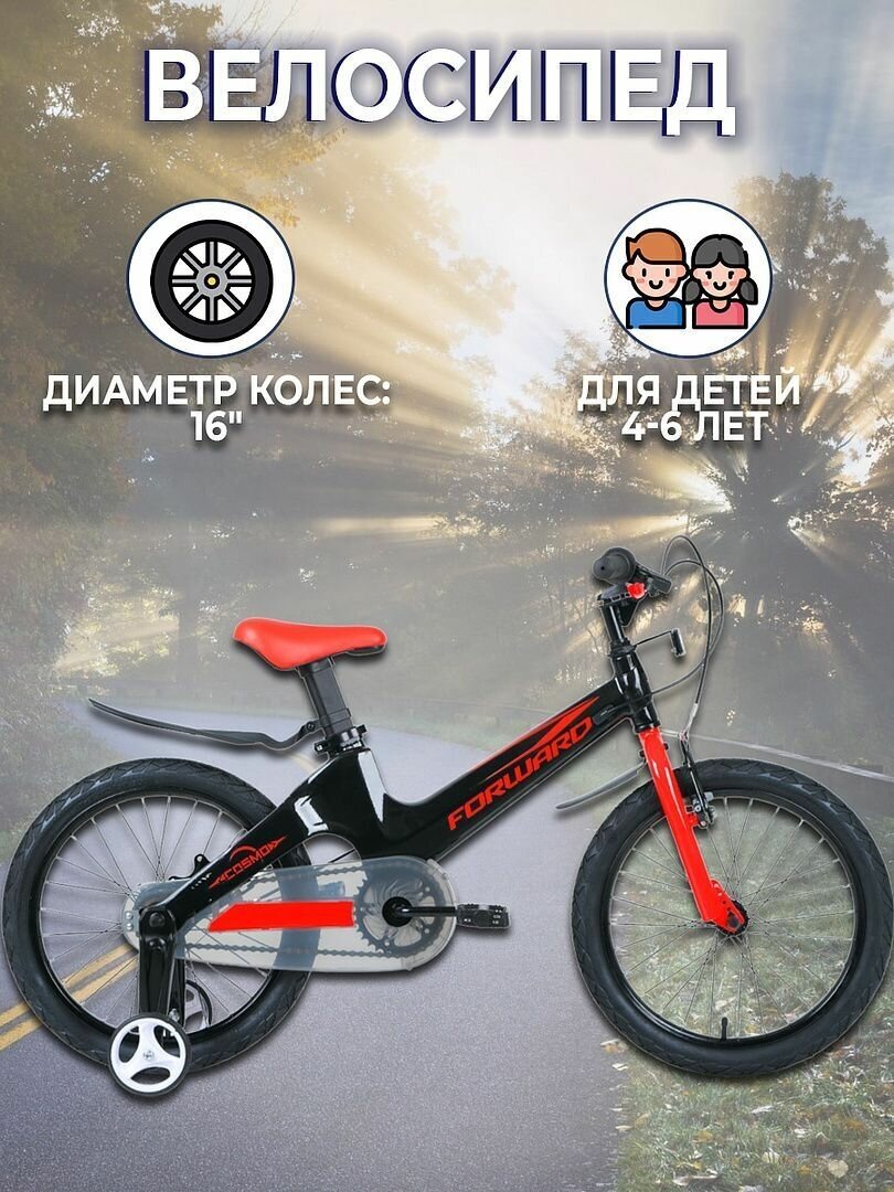 Велосипед детский Forward COSMO 16" 2.0 (2021), 16" черно-красный