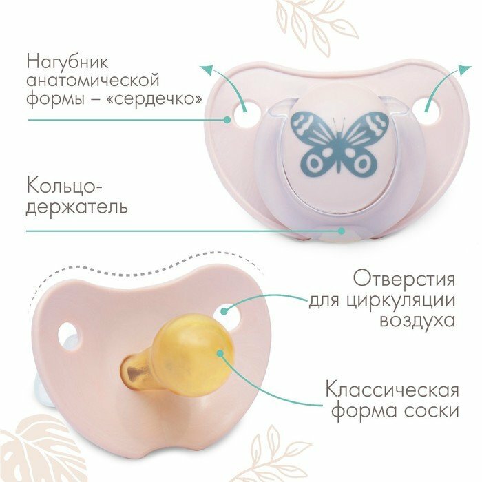 Пустышки Mum&Baby Соска-пустышка классическая, от 3 мес., латекс, "Бабочка" 550 ₽