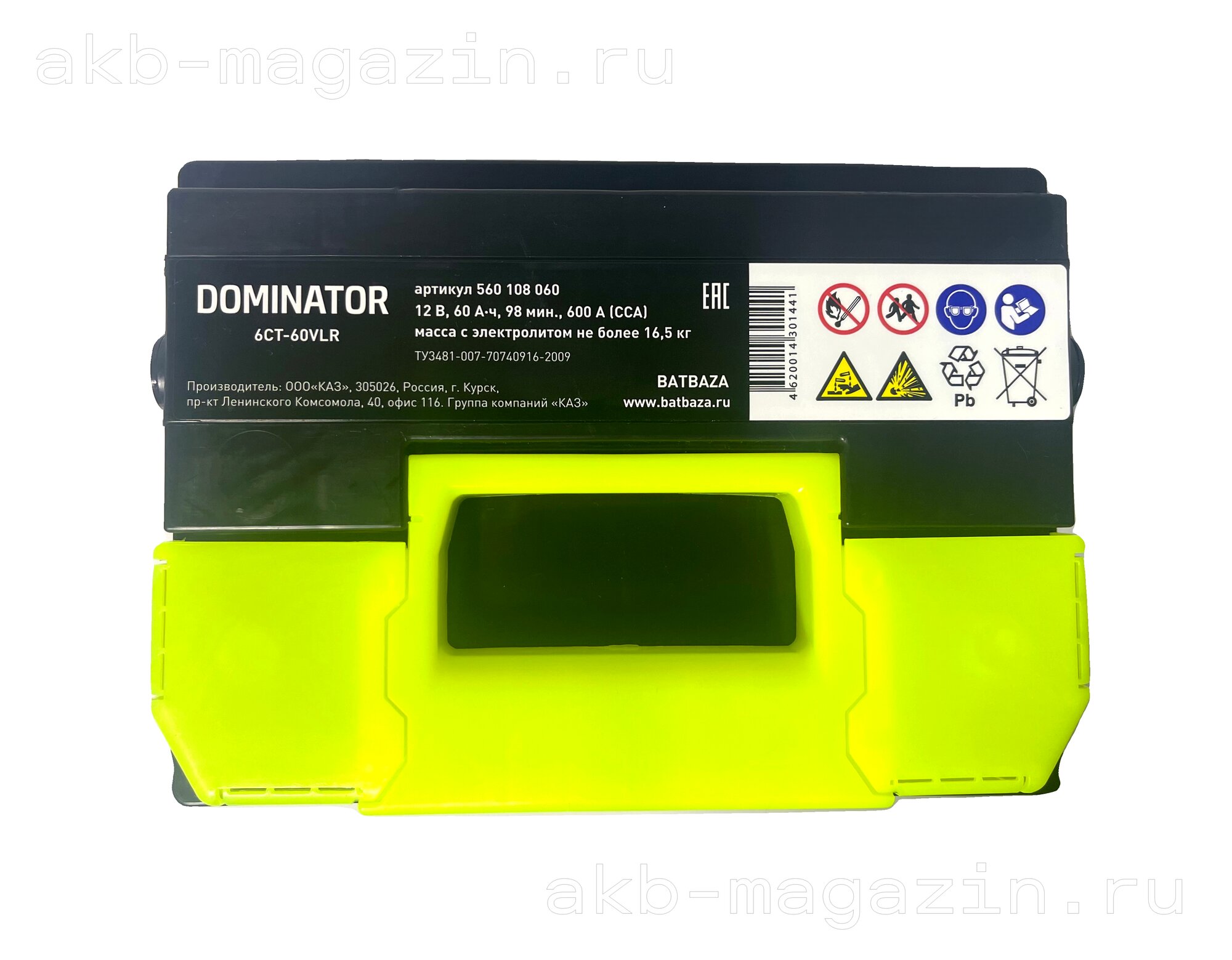 10 цен на Автомобильный аккумулятор DOMINATOR 6ст- 60 (LR) обратная полярность