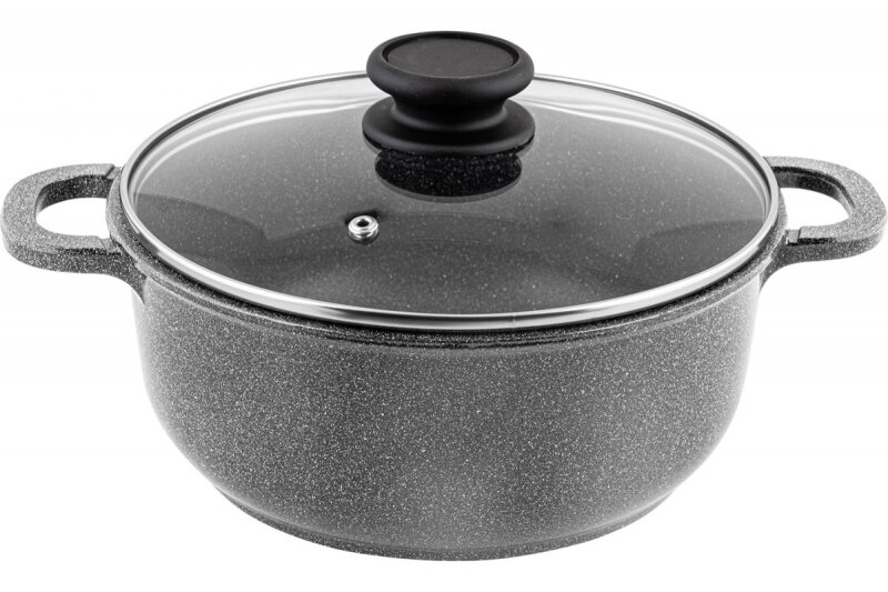 Кастрюля Маруся 7001-26к с индукционным дном со стеклянной крышкой, 5,5 л, цвет черный