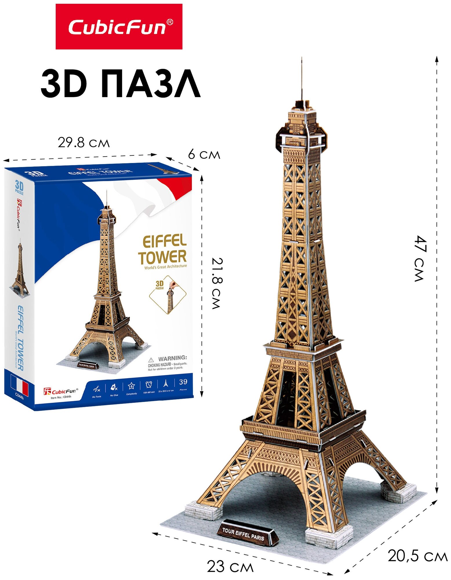 Пазл 3D CubicFun Эйфелева башня, 39 деталей C044h 1648169