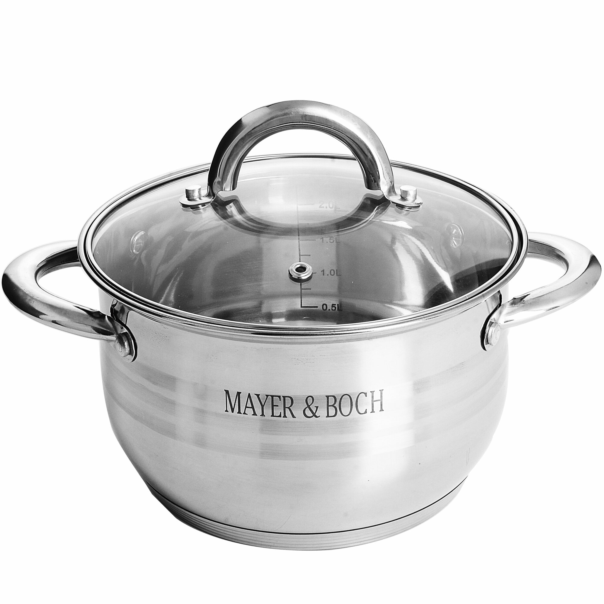 10 цен на Кастрюля MAYER & BOCH 24031, 2,8 л со стеклянной крышкой семислойное дно