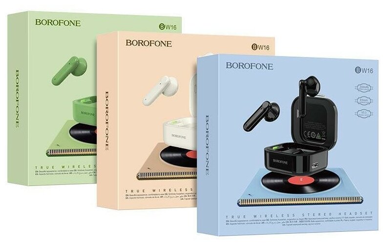 Отзывы на Наушники беспроводные Borofone BW16, вкладыши, TWS, микрофон, BT5.3, 30/250 мАч, чёрные