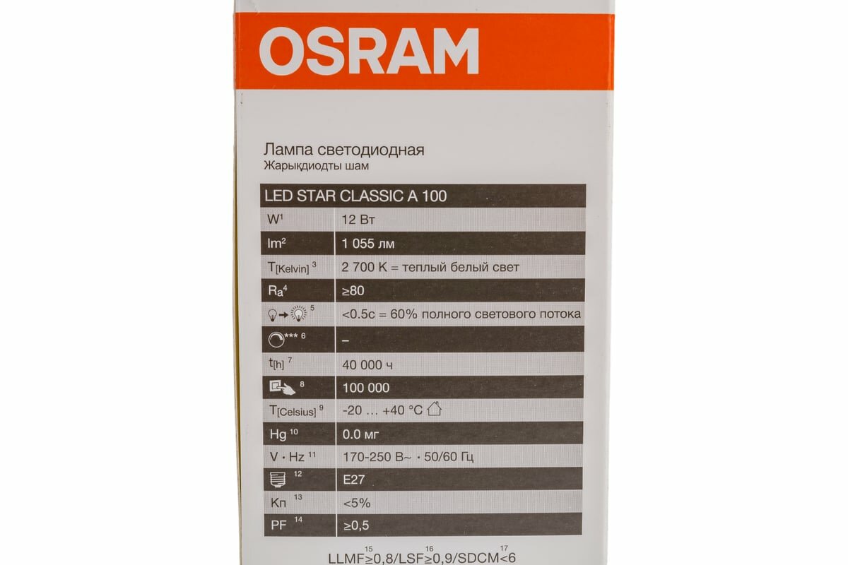 Отзывы на Светодиодная лампа Ledvance-osram Osram LS CLASSIC A100 12W/827 170-250V FR E27 10X1