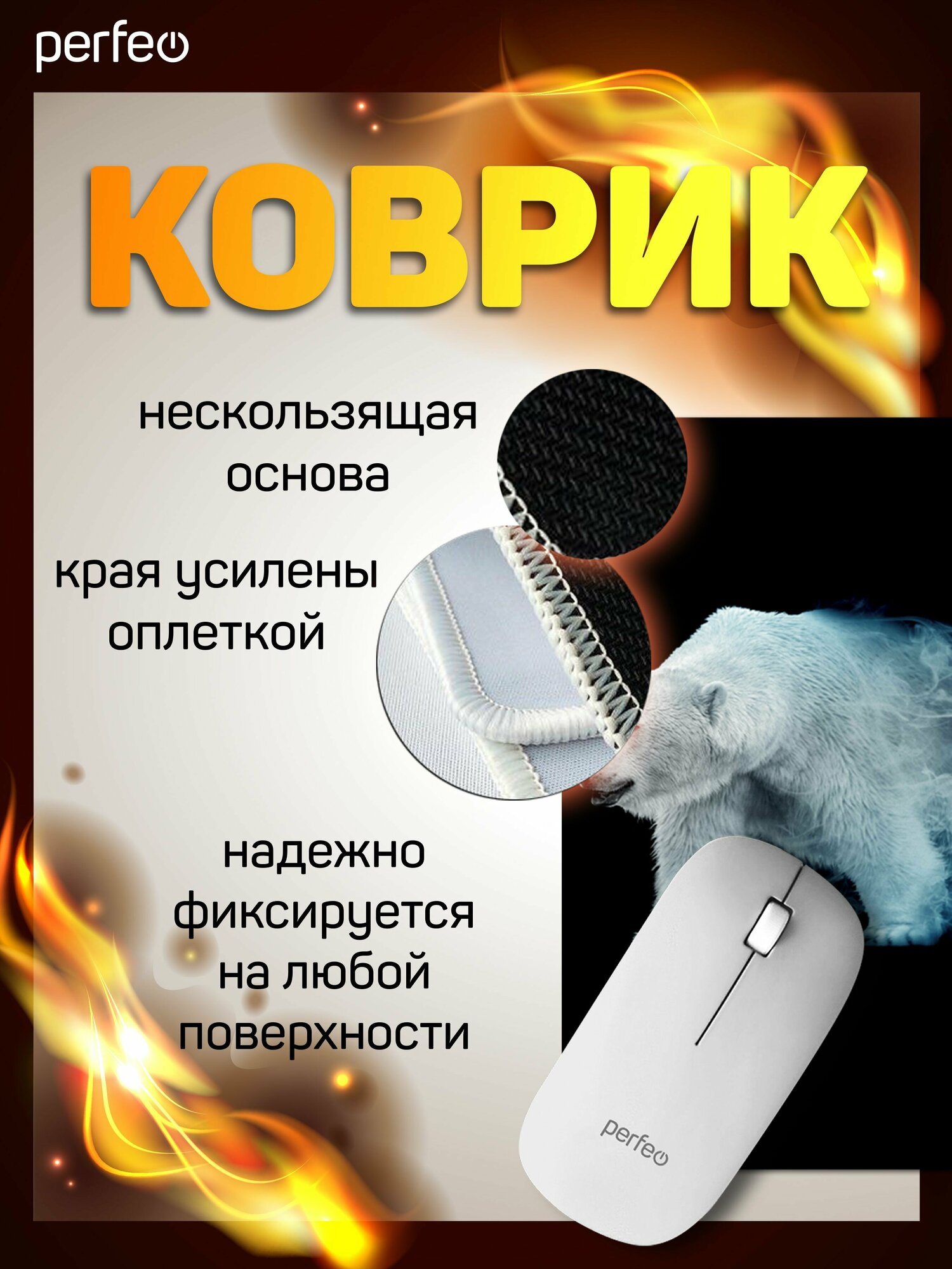 Коврик для мышки Flames, Белый медведь, 240*320*3 мм информация: