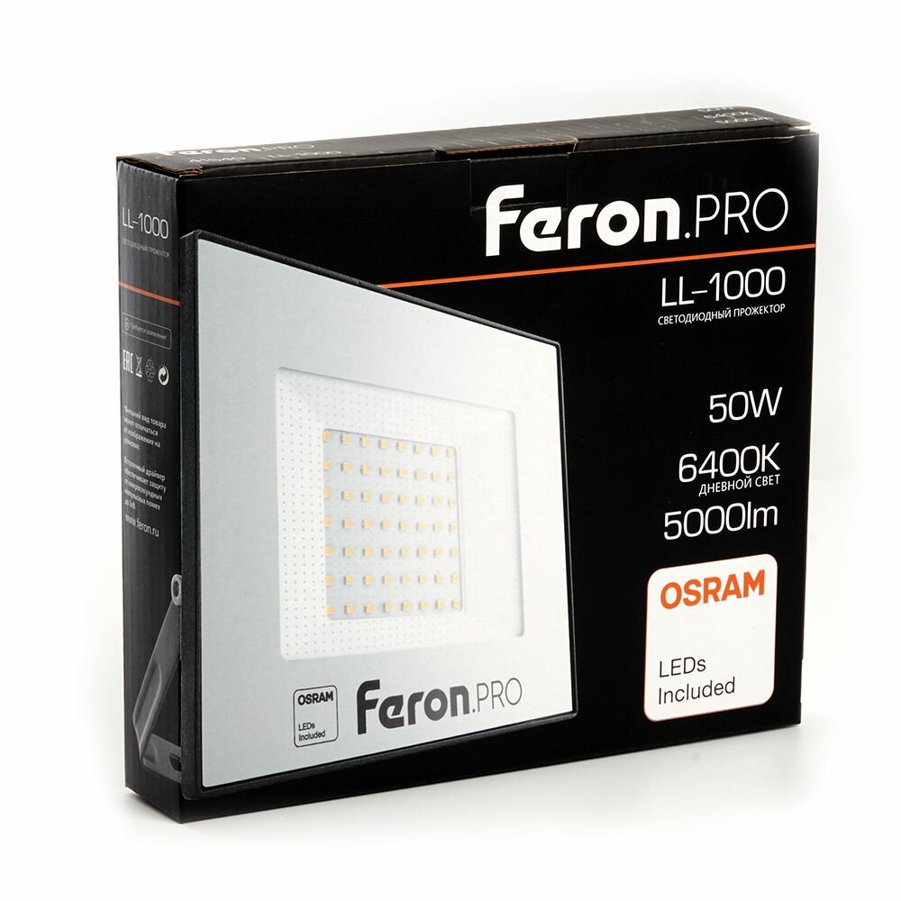 Светодиодный прожектор .PRO LL-1000 IP65 50W 6400K черный, FERON 41540 (1 шт.) информация: