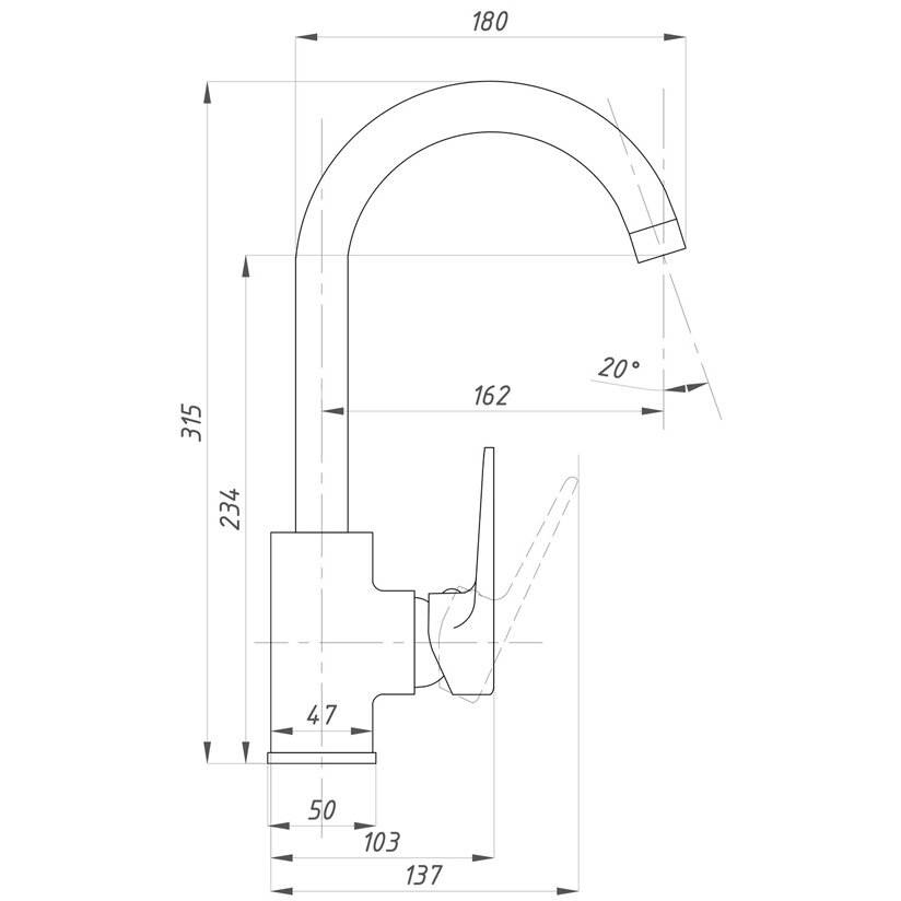 Смеситель для кухни 35к ПСМ-400-3 400 тип см-моцба, выс. пов. излив, п/гайку, хром