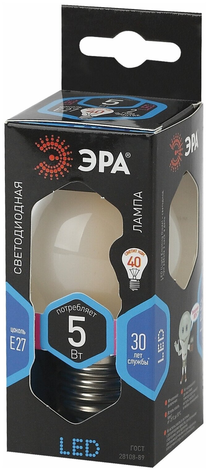 Отзывы на Лампа светодиодная ЭРА, 5 (40) Вт, цоколь E27, шар, холодный белый свет, 30000 ч., LED smdP45-5w-840-E27 452182