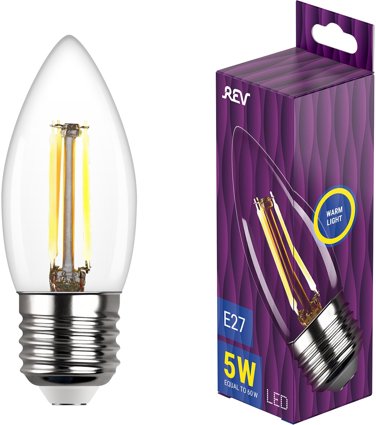 Лампа светодиодная REV filament свеча С37 5Вт E27 2700K 515Лм 32424 9