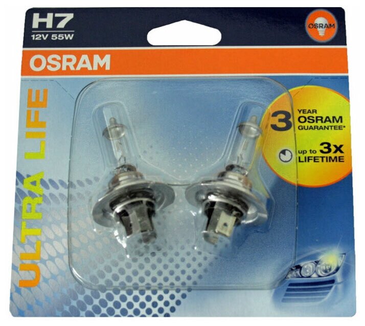 Отзывы на Комплект галогенных ламп 2шт H7 12V 55W PX26D ULTRA LIFE (в 3 раза увеличен срок службы по сравнению со стандартной лампой) OSRAM 64210ULT-HCB