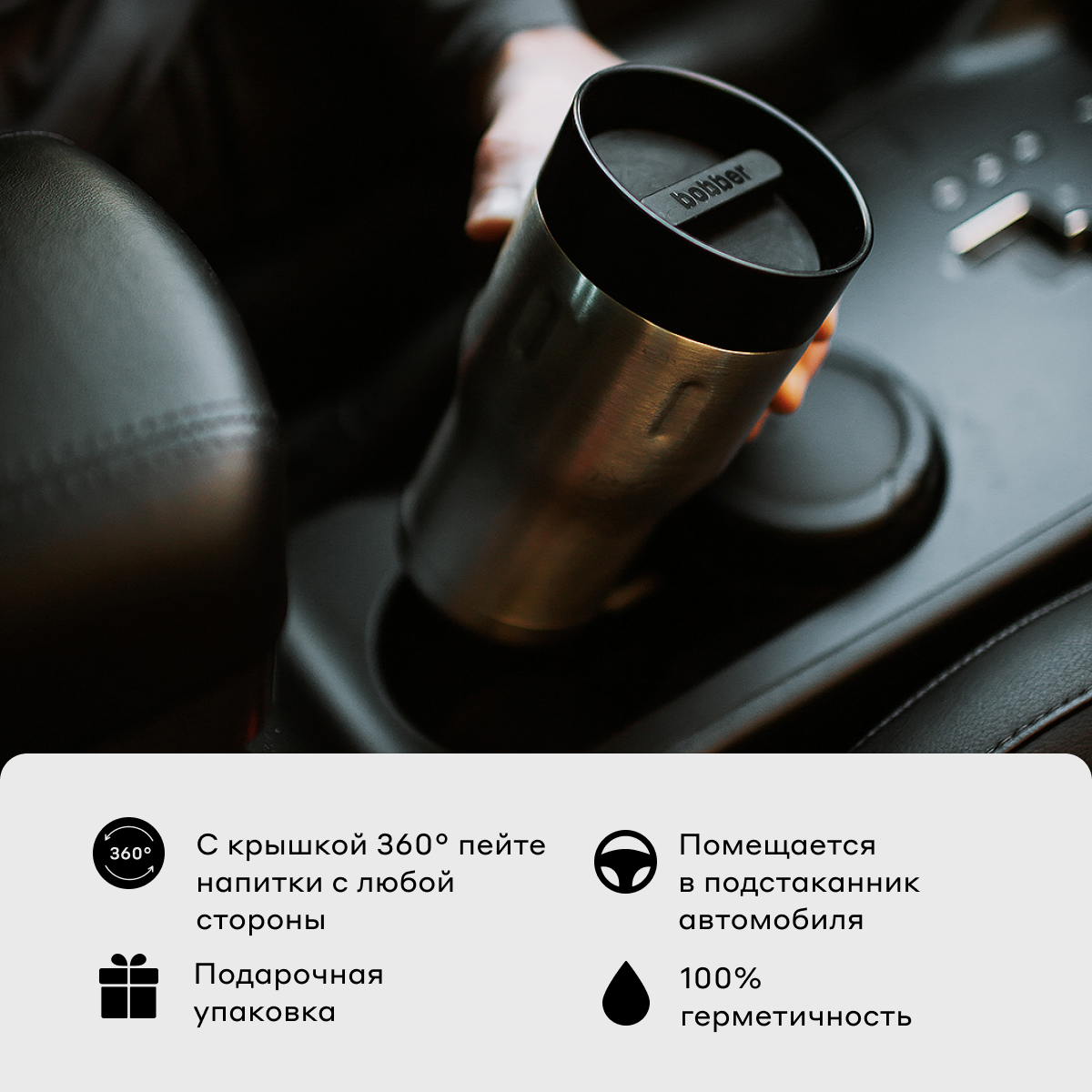 Термокружка для кофе автомобильная 350 мл с крышкой/Bobber Tumbler нержавеющая сталь/в подарочной упаковке 3 943 ₽
