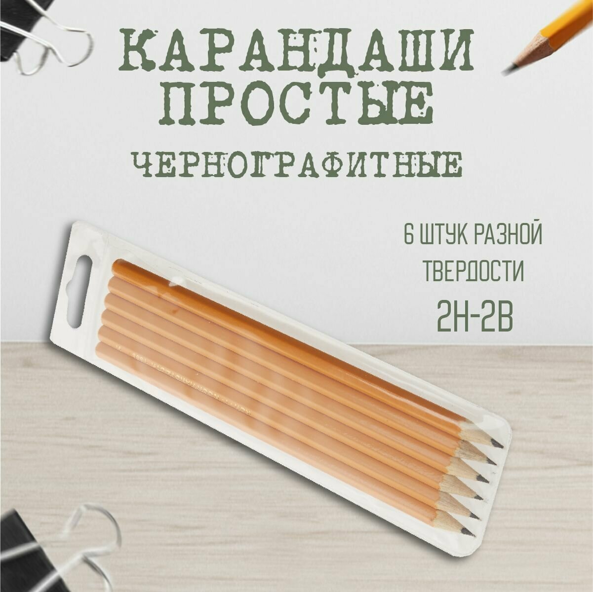 Набор карандашей чернографитных разной твердости 6 штук 1696, 2H-2B 477 ₽