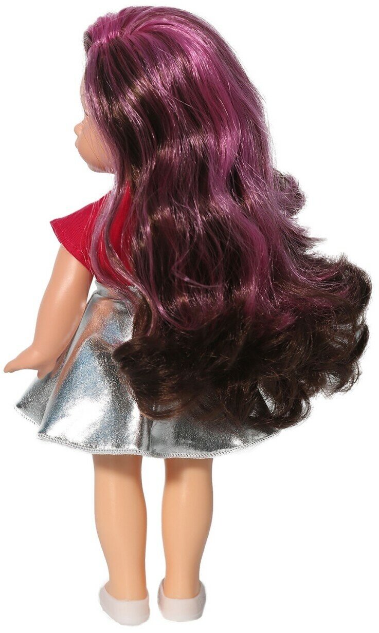 | Комплектация | кукла в одежде (трикотажная футболка с коротким рукавом и наклейкой «кристалл», серебристая расклешённая юбка из парчового трикотажа) туфельки |